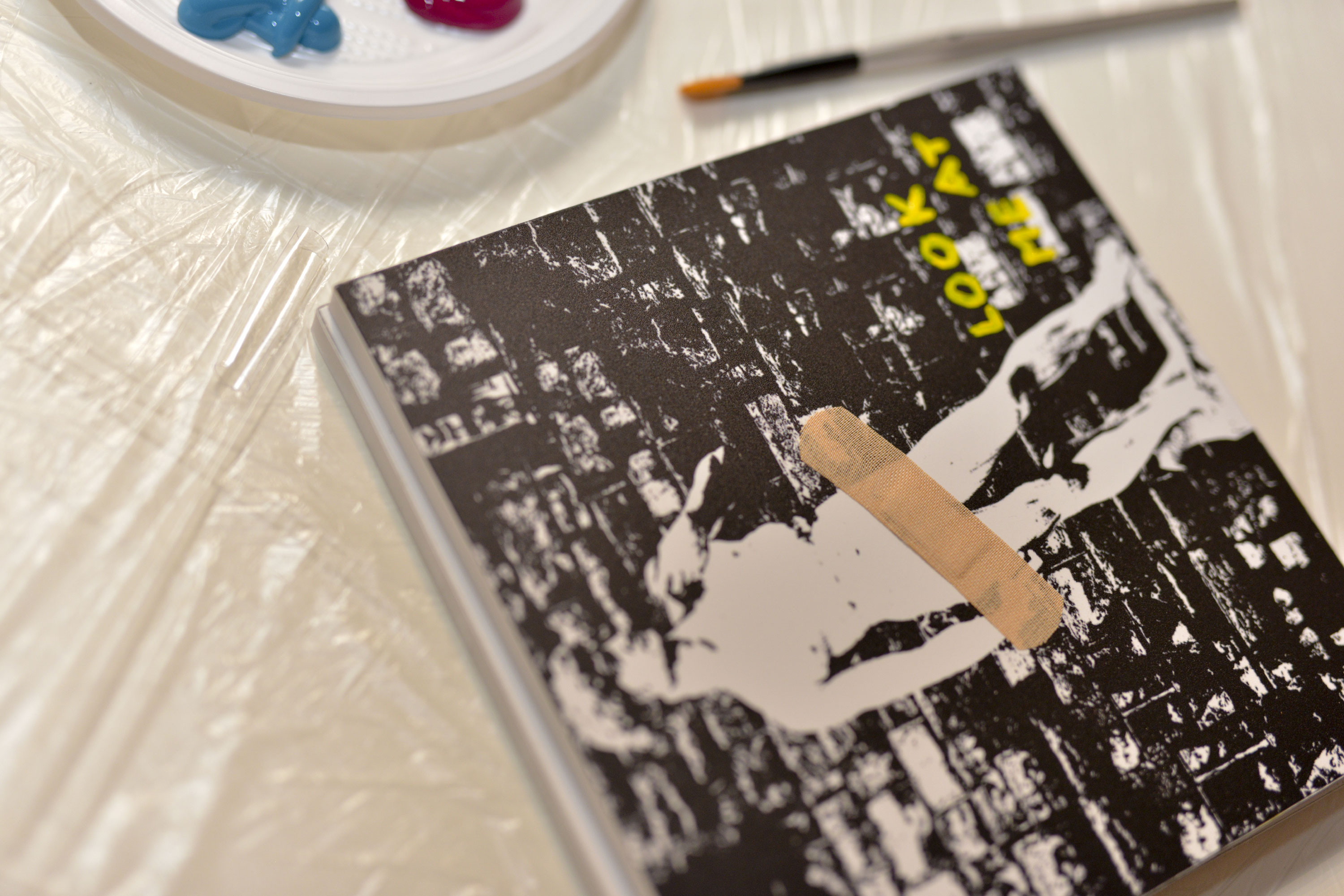 Il secondo soggetto è il David di Michelangelo; l’idea è coprire le parti della statua che potrebbero offendere lo sguardo di qualche osservatore e sfidare lo stesso con un invito a osservare: un cerotto (nella borsa ho veramente di tutto!) e il messaggio provocatorio “Look at me!”.